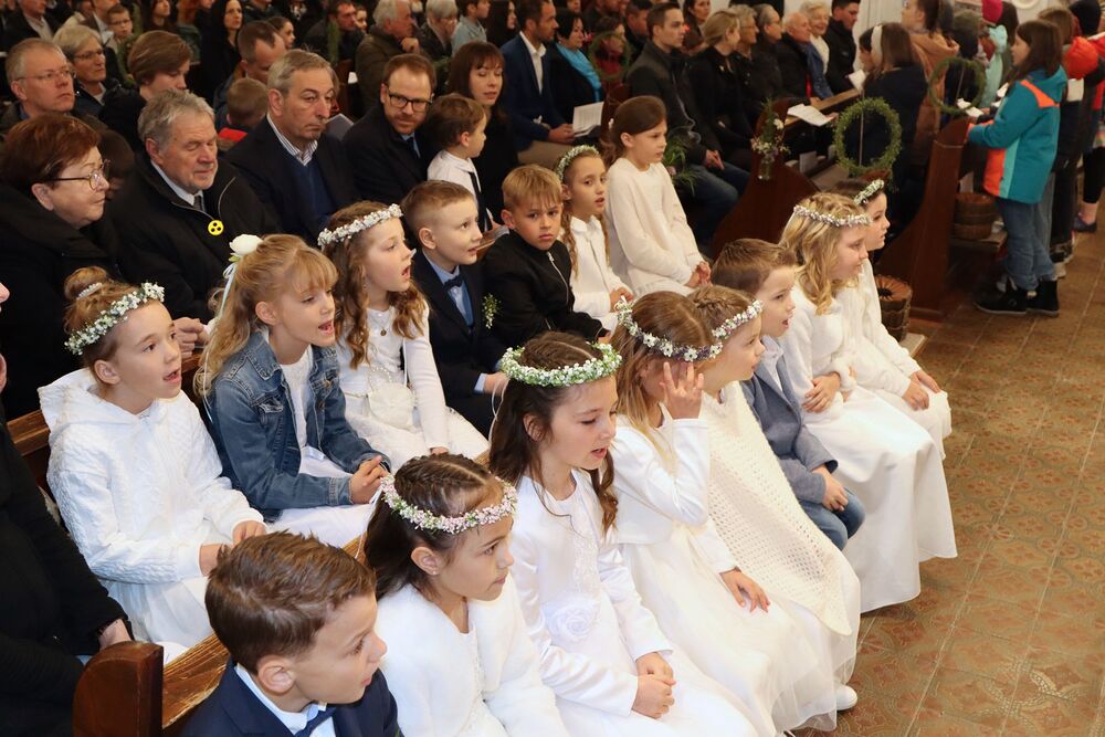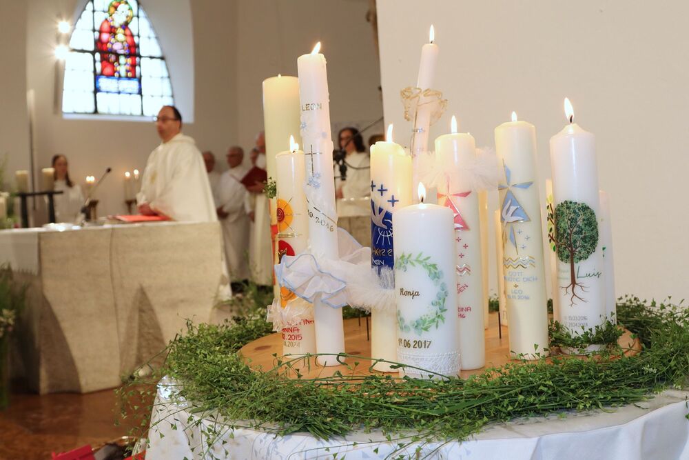 Am Sonntag, den 21. April dieses Jahres fand das jährliche Dankfest der Kommunionkinder statt, und trotz des kalten Wetters wurde es zu einem wunderschönen Fest. Der Gottesdienst wurde von Priester Pio sehr liebevoll gestaltet und vom Schulchor unter der Leitung von Lehrer Jürgen Mayer musikalisch umrahmt. Besonders toll war die Aufführung des einstudierten Stücks "Ich hab einen Draht zu dir", das die Kommunionkinder zusammen mit Ruth Jana Braunsteffer aufgeführt haben.