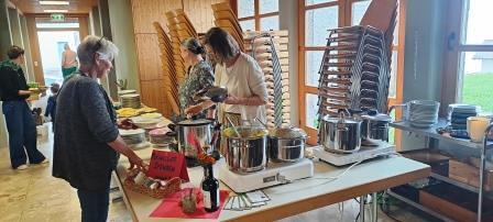 Wie üblich wurde das Foyer vor dem Turnsaal wieder zu einem Speisesaal umfunktioniert und es warteten köstliche Kartoffeln mit Butter und Käse sowie verschiedene Kürbissuppen auf die Besucher.