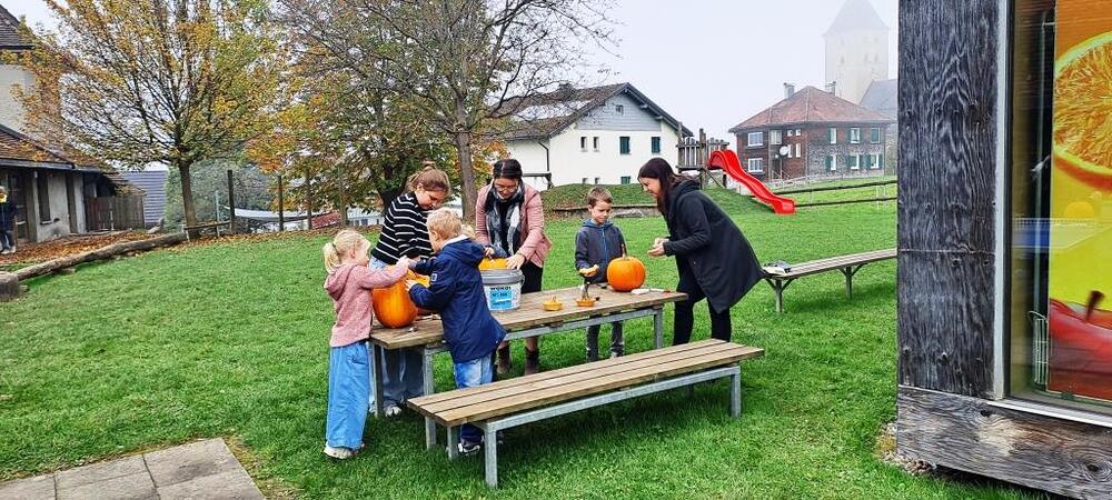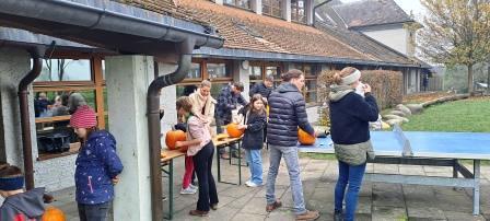Ja und auf die Kinder und Väter- (und Mütter) warteten die Kürbisse damit daraus- Halloween ließ grüßen- möglichst furchterregende Fratzen geschnitzt würden. Trotz herrlichem Herbstwetter und erstem Ferienwochenende kamen zahlreiche BesucherInnen. Und sie mussten ihr Kommen nicht bereuen.