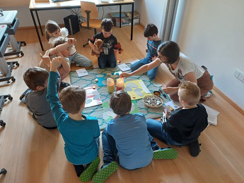 Die Kinder trafen sich gemeinsam mit ihren Eltern zu vier Tischrunden mit den Themen: Gemeinschaft – Licht – Wasser – Brot