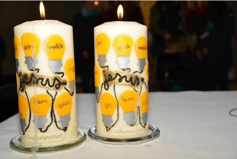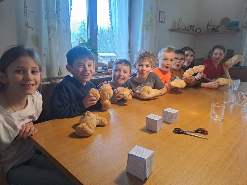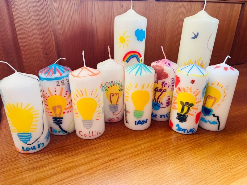 Es entstanden auch tolle Werkstücke, so wurden z.B. Freundschaftsbänder geknüpft, Weihwasserflaschen gestaltet, Glaskreuze gefertigt und Brot gebacken. In der Stunde zum Thema Licht wurden auch die Tischkerzen gestaltet, welche die Kinder zu ihrer ersten Kommunion am Gründonnerstag mitbringen.