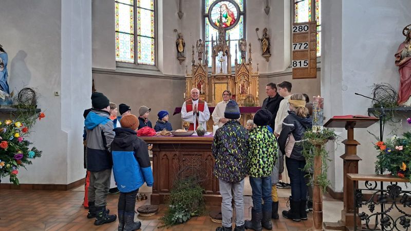 Viele schöne Palmen wurden in der Kirche bei der Palmsonntagsfeier gesegnet.