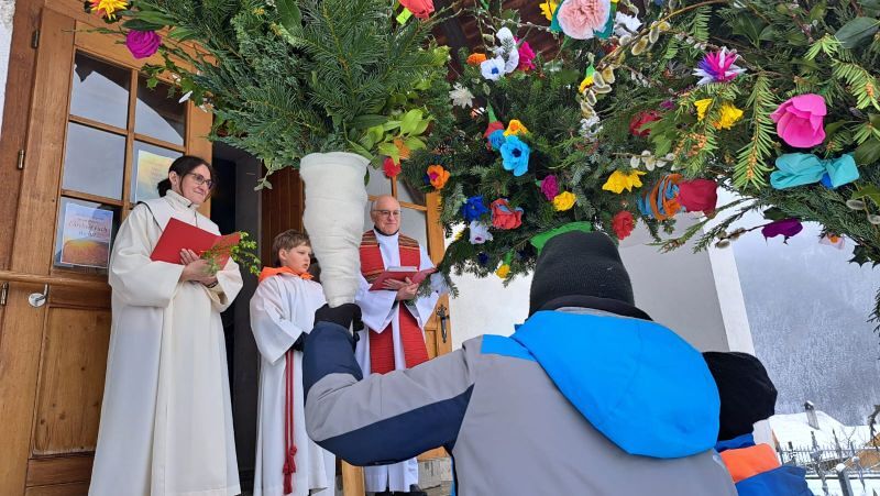 Wie es in Laterns der Brauch ist, gehen die Kinder mit ihren selbstgemachten Palmen, verziehrt mit vielen schönen gebastelten Kreppblumen, von Haus zu Haus und bringen die zuvor in der Kirche gesegneten Palmzweige in die Häuser.
