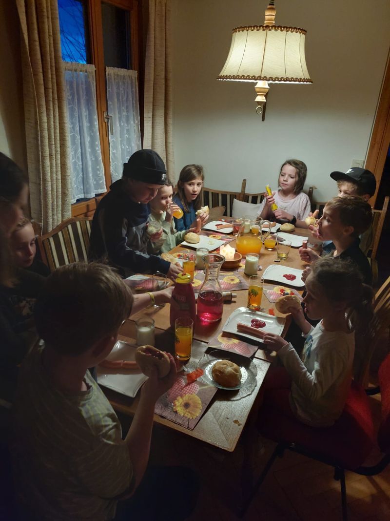 Nach erfolgreicher Lösung haben wir uns im Pfarrhaus, bei einer köstlichen Jause gestärkt, bevor wir uns dann in den Gottesdienst im Hintertobel auf-machten.