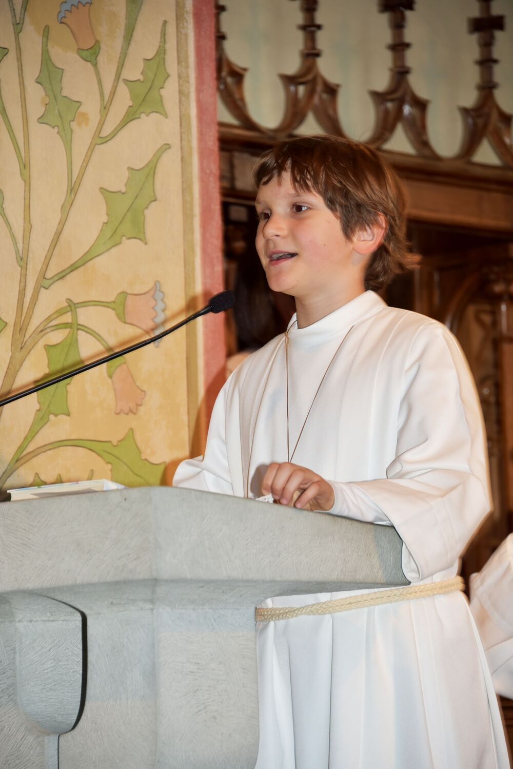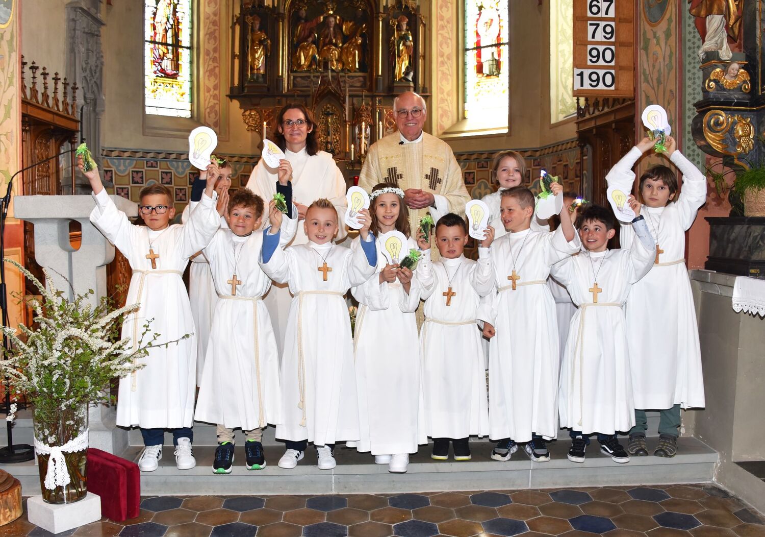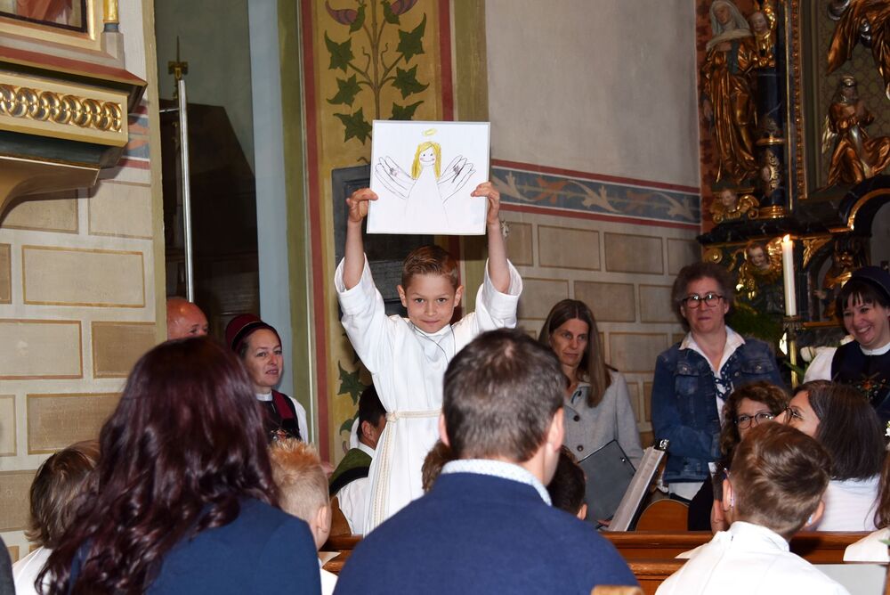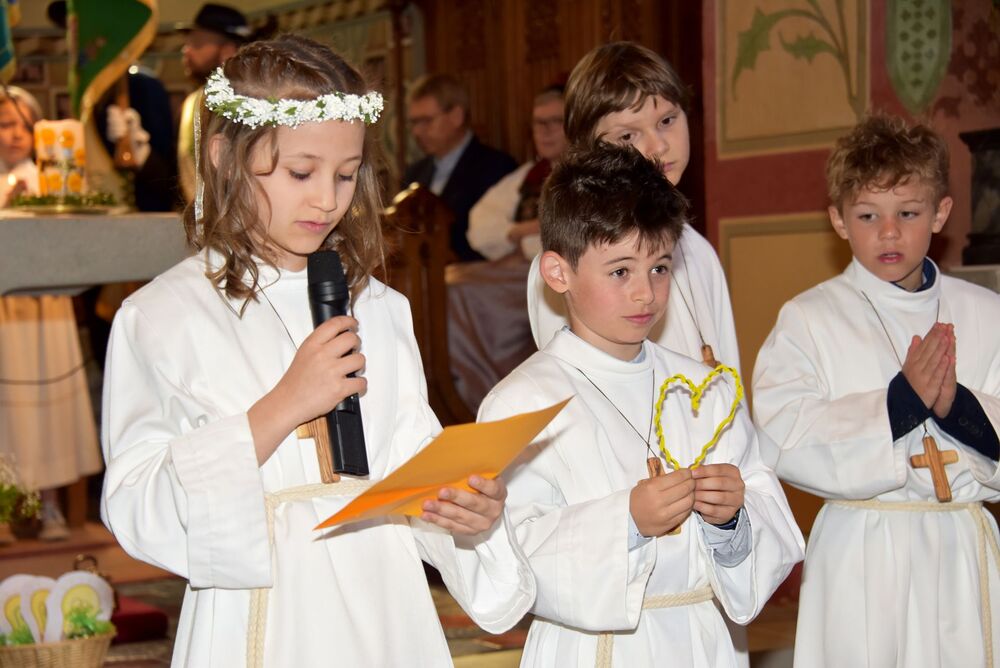 sommerlichen Temperaturen und s’Laternser Chörle, die Schützen, der Trachtenverein und der Musik-verein standen ebenfalls schon parat. Somit stand dem festlichen Einzug in die Pfarrkirche nichts mehr im Weg. Ja, wir hatten sichtlich einen guten Draht nach „oben“ und der begleitete uns durch den gesamten Gottesdienst – egal ob bei der Begrüßung, der Predigt, den Fürbitten, dem Gabengang, dem gemeinsam gesungen „Vater Unser“, dem mit Spannung erwarteten zweiten Kommunionempfang und die Bedankung bei allen die Mitgeholfen haben.