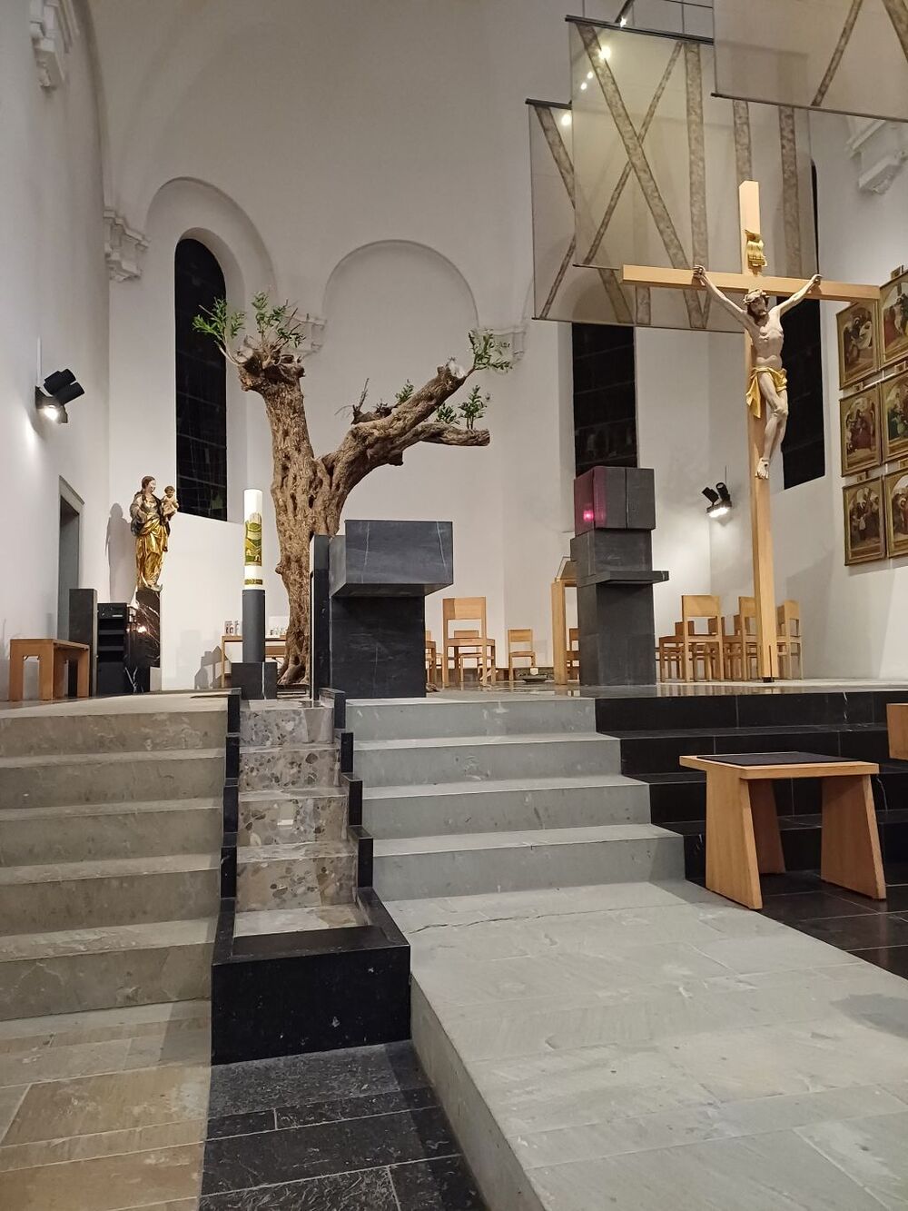 Die anschließend interessante Kirchenführung brachte auch überraschende Bezüge zum Vorderland hervor. So besteht der Altar aus 12 verschiedenen Quadersteinen aus Vorarlberg. Da staunte so mancher nicht schlecht, dass aus Laterns, Röthis und Bludenz ein Stein mit dabei war.
