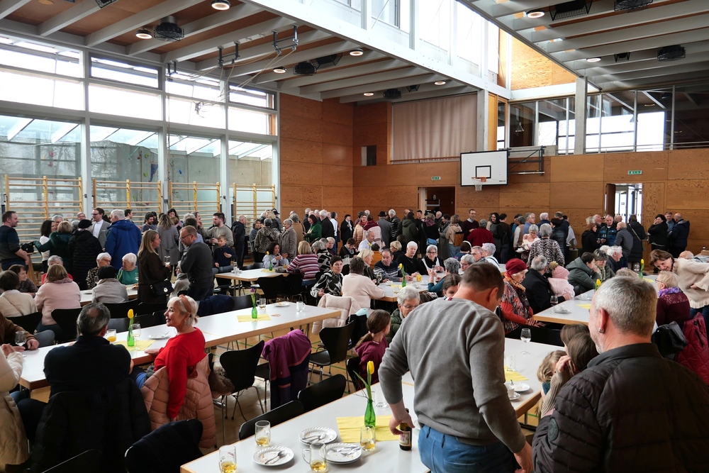 Nach dem Gottesdienst folgten mehr als 250 Mitfeiernde der Einladung zur gemeinsamen Agape im Frödischsaal der Gemeinde Zwischenwasser, wo die Feier in persönlicher Begegnung ausklang. Die Resonanz war überwältigend: Zahlreiche Telefonate und E-Mails erreichten die Pfarre. Viele bedankten sich für eine Messfeier, die sie – ob vor Ort oder vor dem Bildschirm – tief berührt habe.