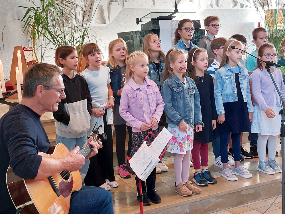 Kinder der Volkschule Muntlix sangen mit Begeisterung im Chor. Wolfgang Kremmel begleitete mit der Gitarre wieder wunderbar und mit viel Gefühl.