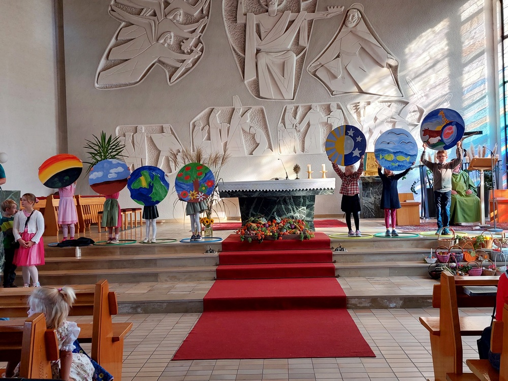 Teams erzählten, wie Gott die Erde wunderbar erschaffen hat. Zu jedem Tag zeigten Kinder ein passendes Bild. Gott sagte zu jedem Tag: "Es ist gut!" und beim Menschen "Es ist sehr gut!".