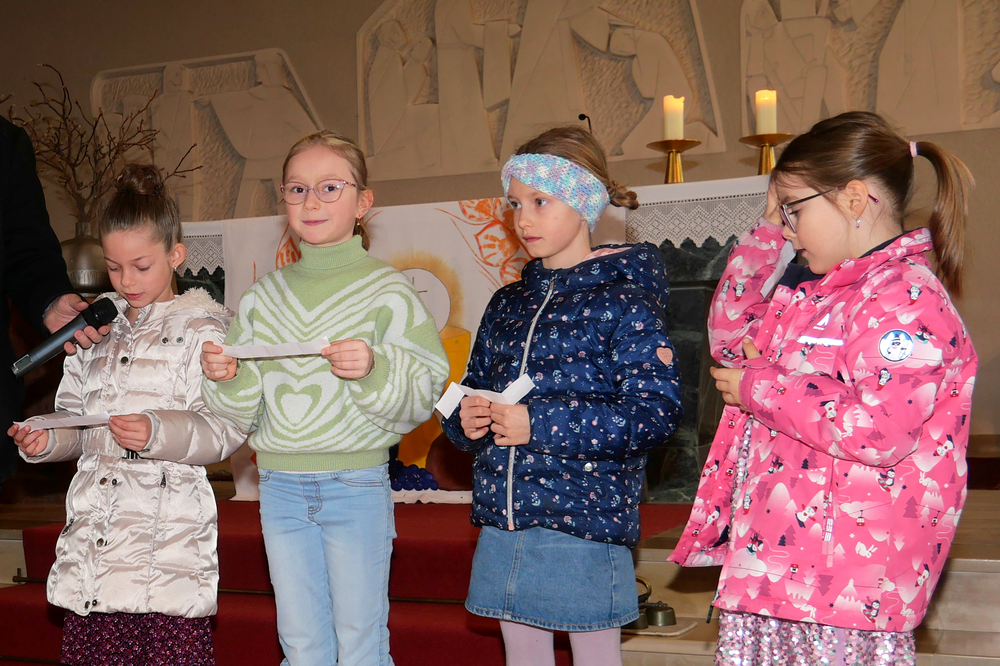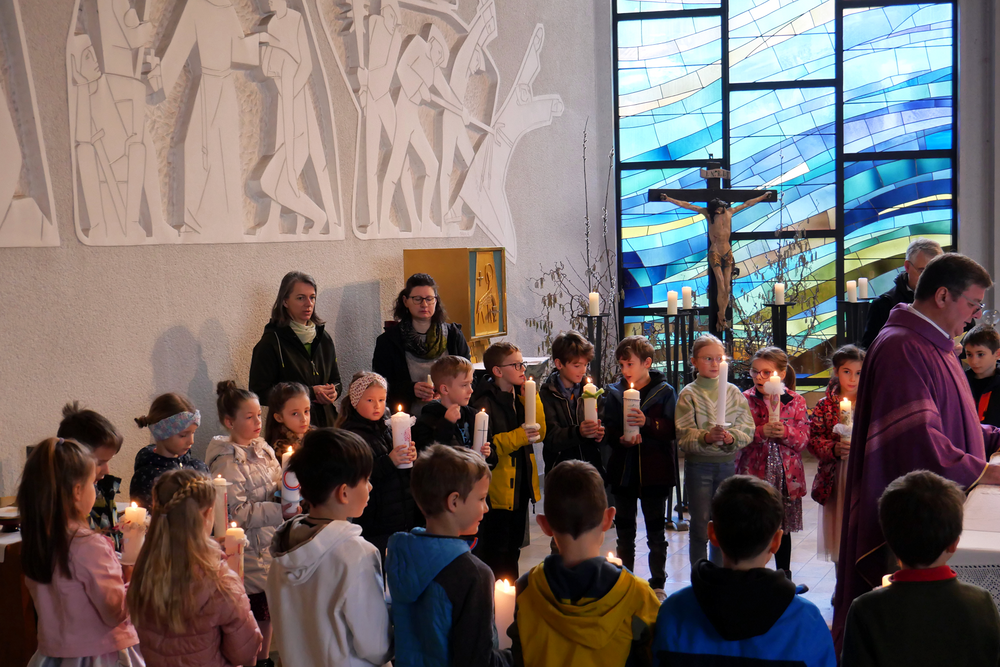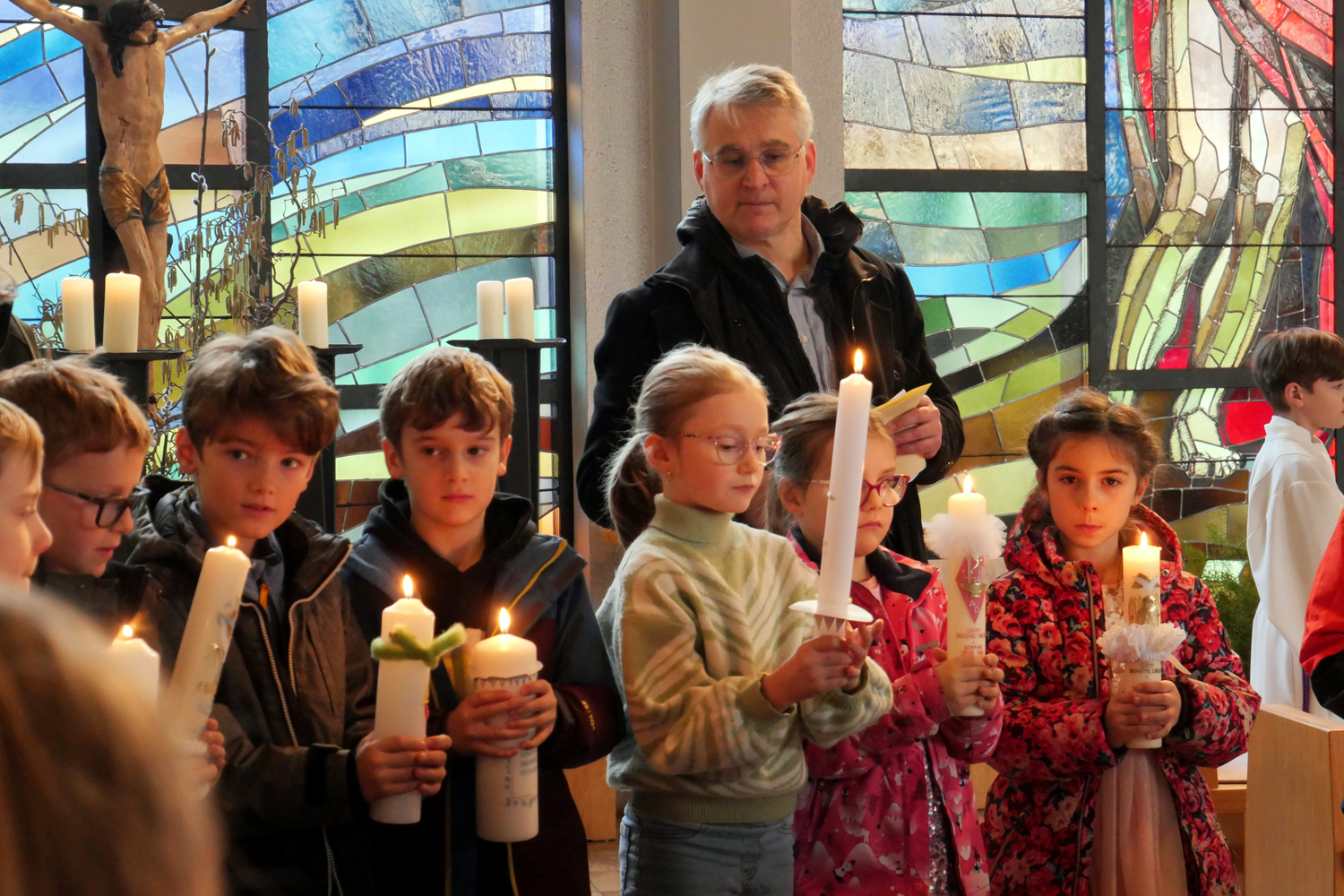 In Erinnerung an die Taufe wurden die Kinder mit ihren Kerzen in den Altarraum zur Lichtfeier eingeladen. Bei ihrer Tauferneuerung antworteten sie auf ein einfaches Glaubensbekenntnis mit einem dreifachen „Ich glaube!“