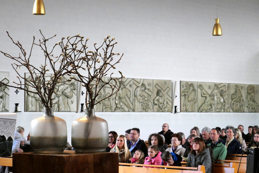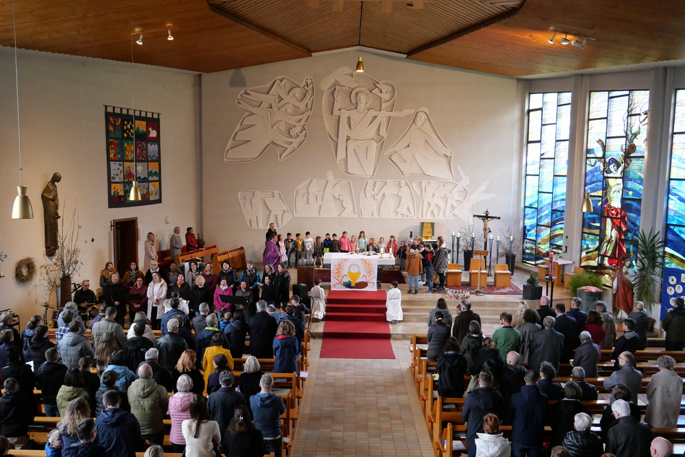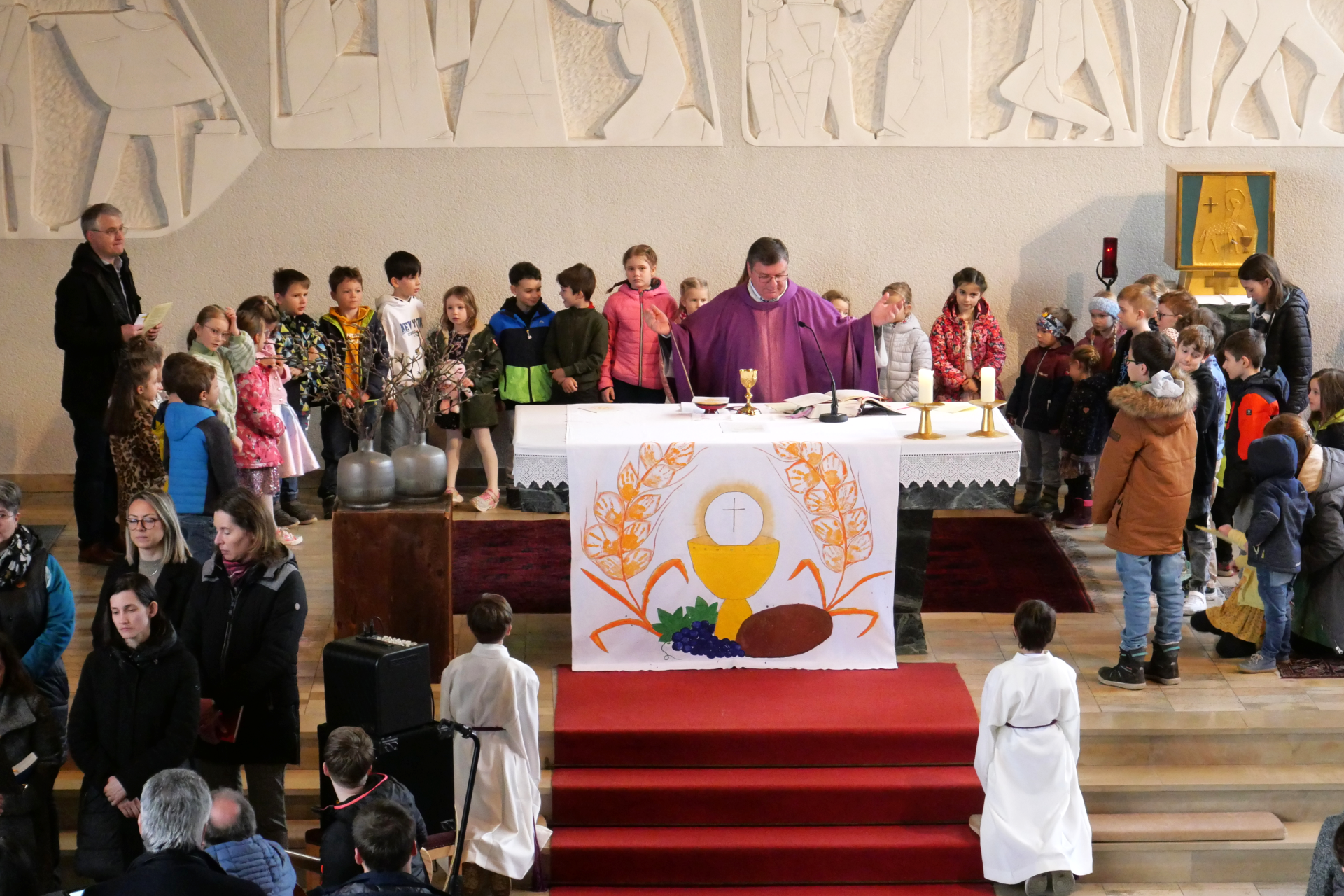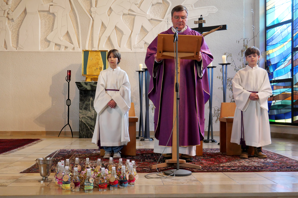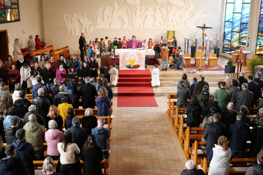 Am 3. Fastensonntag konnte Pfarrer Cristinel zwanzig Kommunionkinder und alle Versammelten zum Fest der Tauferneuerung begrüßen.