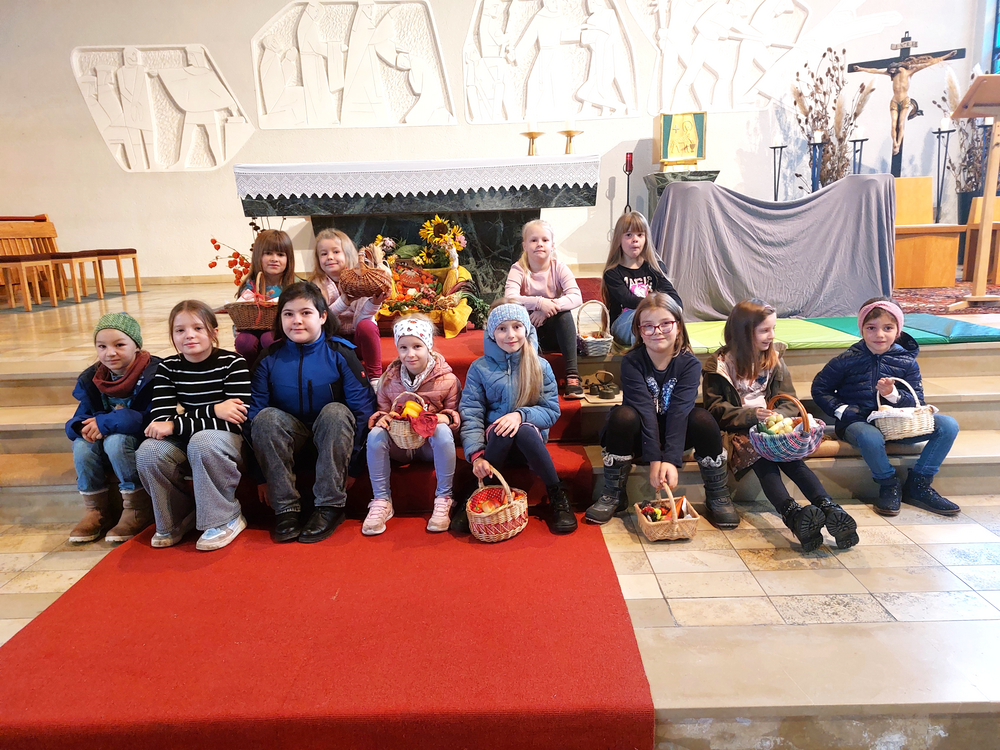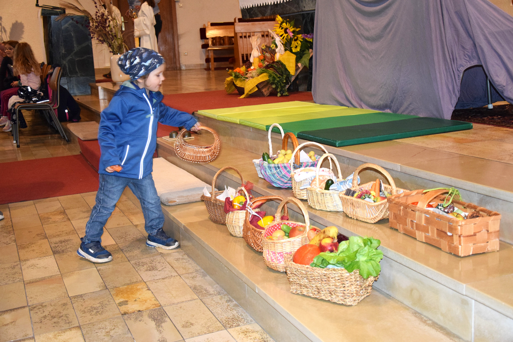 Viele große und kleine Besucher kamen zum Familiengottesdienst mit Pfarrer Cristinel Dobos, um für alle guten Gaben zu danken.
