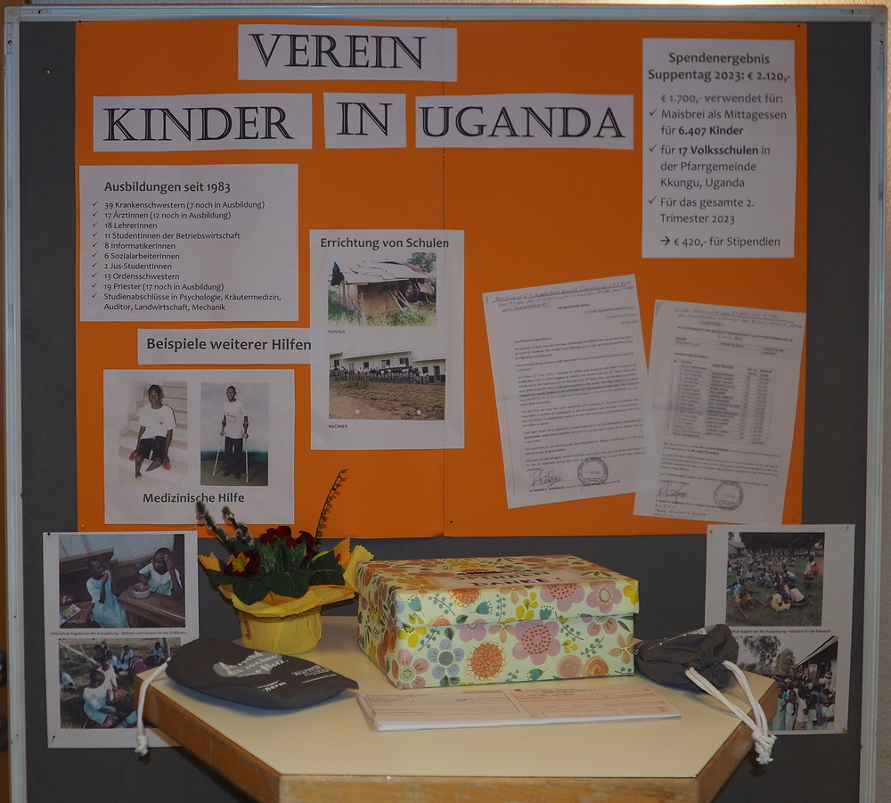 Allen ein herzliches "Vergelt's Gott" für das gute Gelingen des traditionellen Suppentags sowie den Spenden in Höhe von 2.000 Euro für den Verein "Kinder in Uganda", welche den Kindern in Uganda eine warme Mahlzeit ermöglichen.