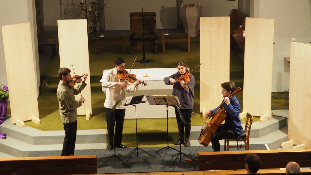 Mit dem Streichquartett "Metanoia" waren vier junge, internationale Talente auf der Bühne zu sehen und zu hören, die durch die Musik eine gemeinsame Sprache sprechen. Durch das Studium an der Stella Vorarlberg sind Raul Campos (Violine), Yashar Noroozi (Violine), Imgesu Tekerler (Viola) und Jonas Streit (Violoncello) verbunden und mit dem "Ländle" verknüpft.