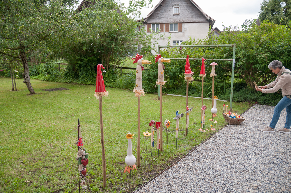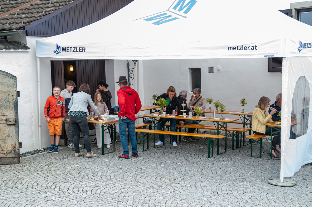 Bei trockenem Wetter waren am nächsten Veranstaltungstag Besucher:innen im ganzen Dorf unterwegs. Der "Kunst-Marktplatz" sorgte für eine gelungene Abwechslung im sonst eher ruhigeren Ort und wurde gegen geselliges Beisammensein und Begegnung eingetauscht.