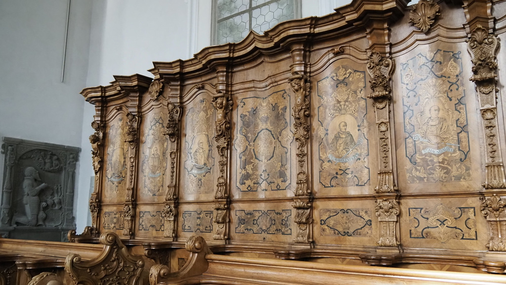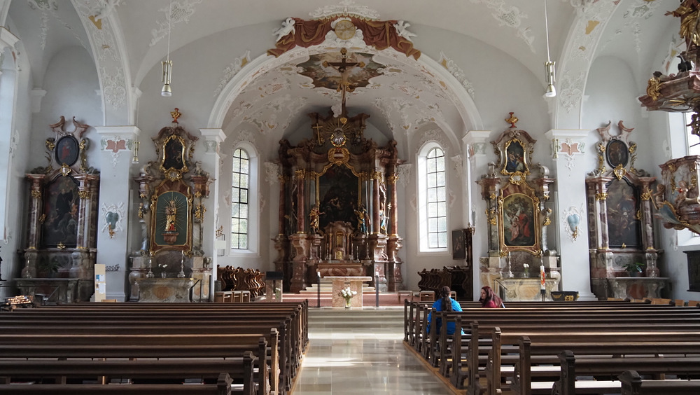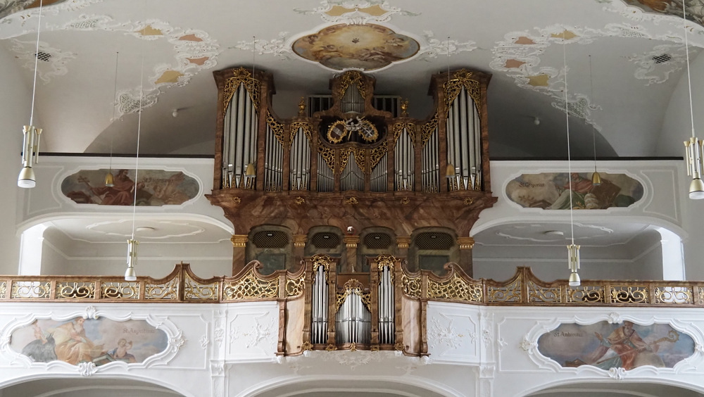 Besonders hervorgehoben wurde der gotische Kirchturm - errichtet 1480, der als eines der ältesten Bauteile erhalten ist. Mit einer künstlerischen Friedensbotschaft am Haupteingang wurden die Eintretenden begrüßt. Im Inneren beeindruckte darüberhinaus der helle, barocke Kirchenraum gestaltet vom Architekten Franz Anton Beer. Stuckdecken und Fresken sowie eine Bilderreise zu den christlichen Hochfesten schmückten die neu sanierte Kirche. Das besondere Chorgestühl der Mönche sowie ein kürzerer Altar durften im Presbyterium bewundert werden.