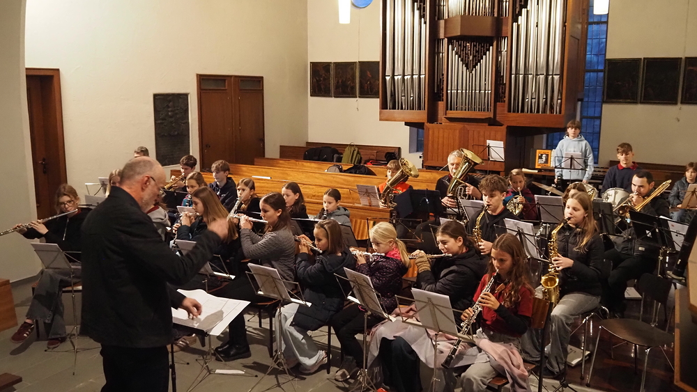 Beim diesjährigen Martinsfest am 8. November durften die Kinder mit ihren leuchtenden Laternen in die dunkle Kirche einziehen. Musikalisch begleitet von der Röthner Jungmusik feierten Vikar Willi und Gemeindeleiter Michael das Martinsfest.