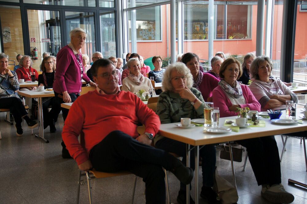 „Gott kann man nicht sehen, aber in der Natur erkennen“ - mit diesem Zitat von Hildegard von Bingen begann der Bildervortrag von Andrea Mathis. Zuerst berichtete sie uns aus dem Leben von Hildegard von Bingen, die als kränkliches Kind bereits mit acht Jahren in ein Kloster kam, in neuem Stil komponierte (und damit in eine Männerdomäne eindrang) und im Laufe ihres Lebens zwei Klöster gründete, die sie auch im hohen Alter von über 80 Jahren noch betreute. Sie hatte bereits sehr früh Visionen und erhielt vom Papst die Erlaubnis, diese aufzuschreiben.