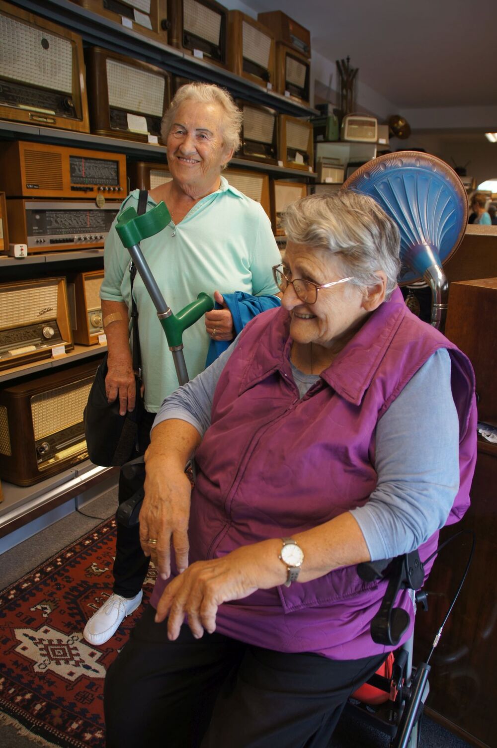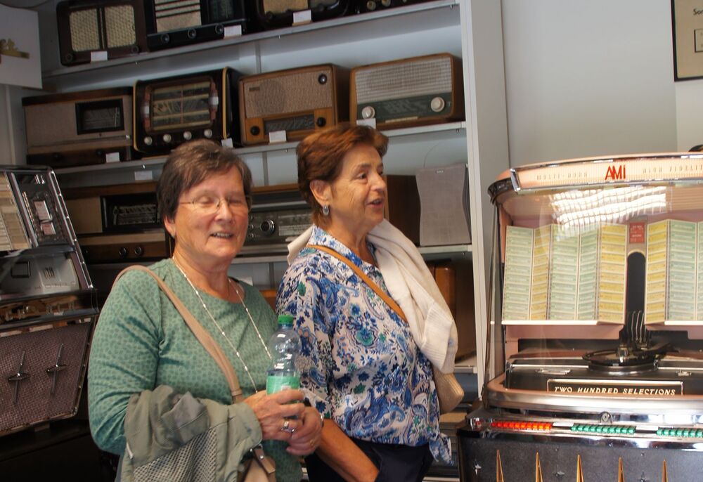 Der leidenschaftliche Sammler Herbert Rauch erwartete uns schon vor dem Museum, wo wir herzlich von ihm und seinen Helfern begrüßt wurden. Nach einem kurzen Film konnten wir alleine durch die Ausstellung streifen. Die Sammlung umfasst mehr als 550, teils wertvolle, Stücke aus der ganzen Welt. Ein besonderes Stück ist ein Radiogerät, das als Skala eine Europakarte aufweist, bei der je nach Einstellung die entsprechende Stadt aufleuchtet. Wir begutachteten Kofferradios, Schwarz-Weiß-Fernseher, Grammophone und wunder-schöne alte Möbelstücke. Es gab auch Musikboxen, aus denen immer wieder alt bekannte Schlager tönten, die sich unsere Senioren gewünscht hatten.