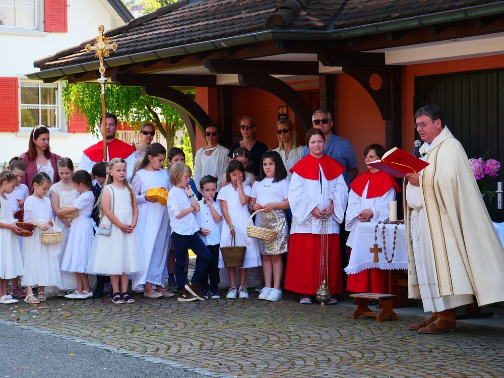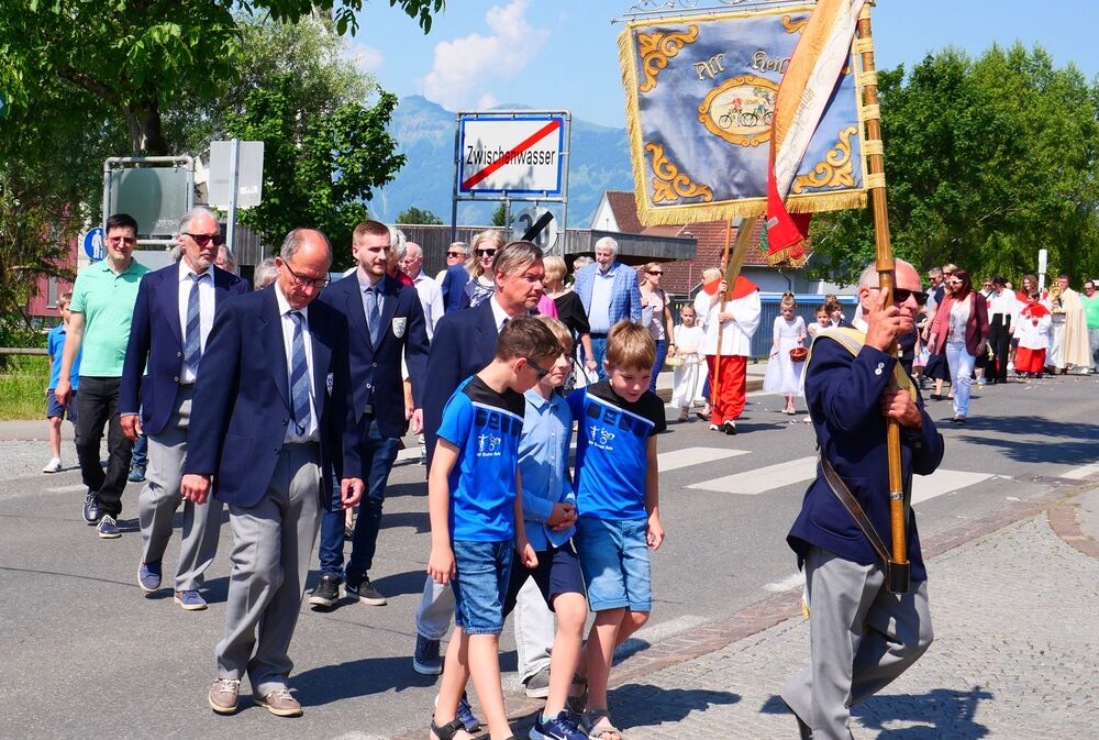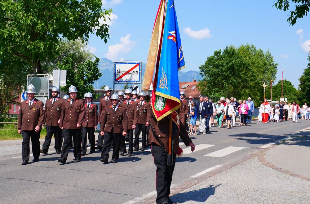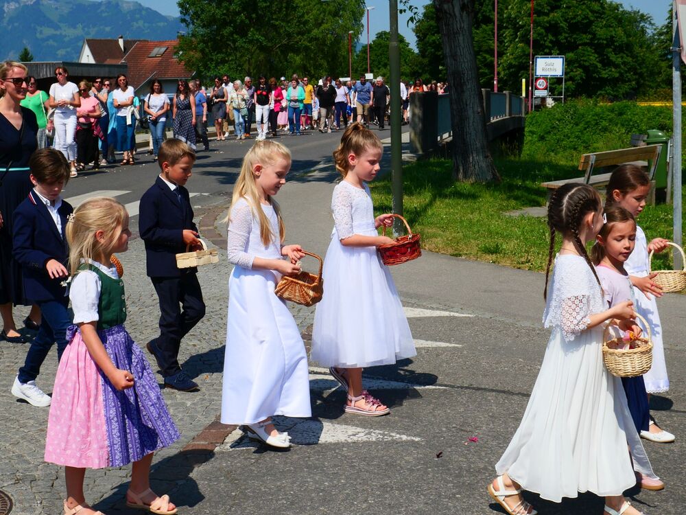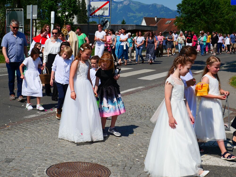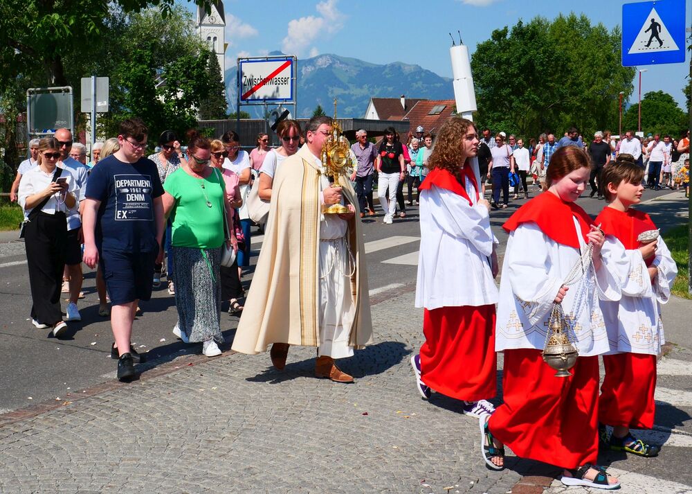 Am Hochfest Fronleichnam führte nach der Messfeier die feierliche Prozession über die Landammannstraße zum ersten Altar beim Restaurant "Trovado" über die Frödischbrücke und Austraße zum zweiten Altar beim Haus der Familie Feuerstein bis in die Kirche von Muntlix, wo wir zum Abschluss gemeinsam "Großer Gott, wir loben dich" sangen.