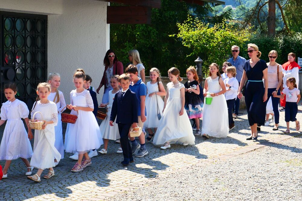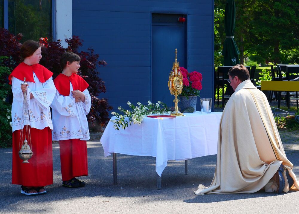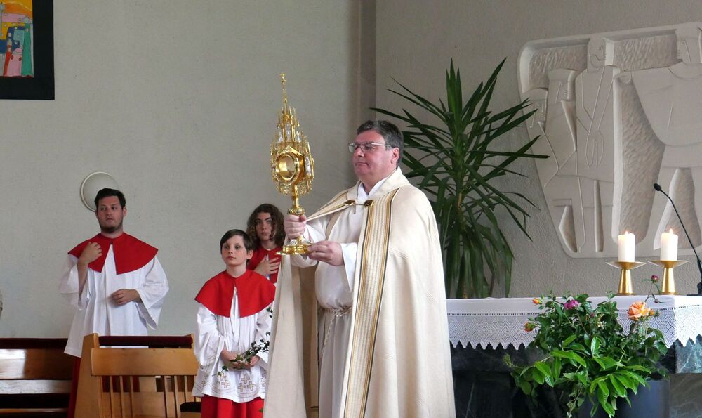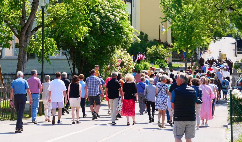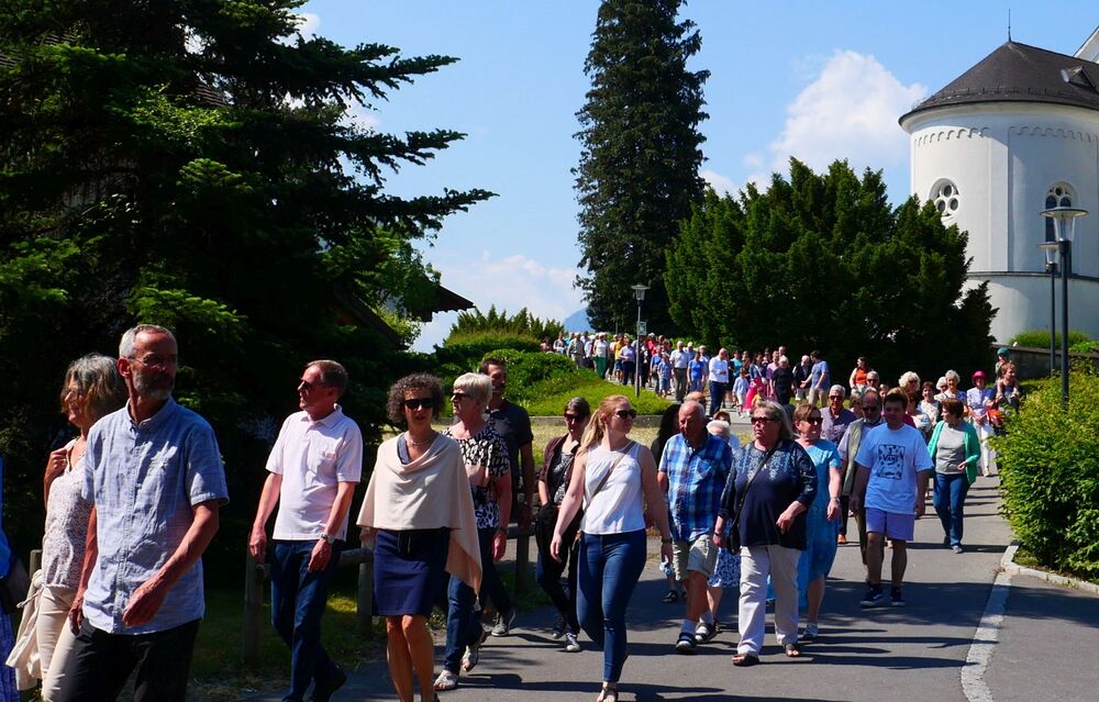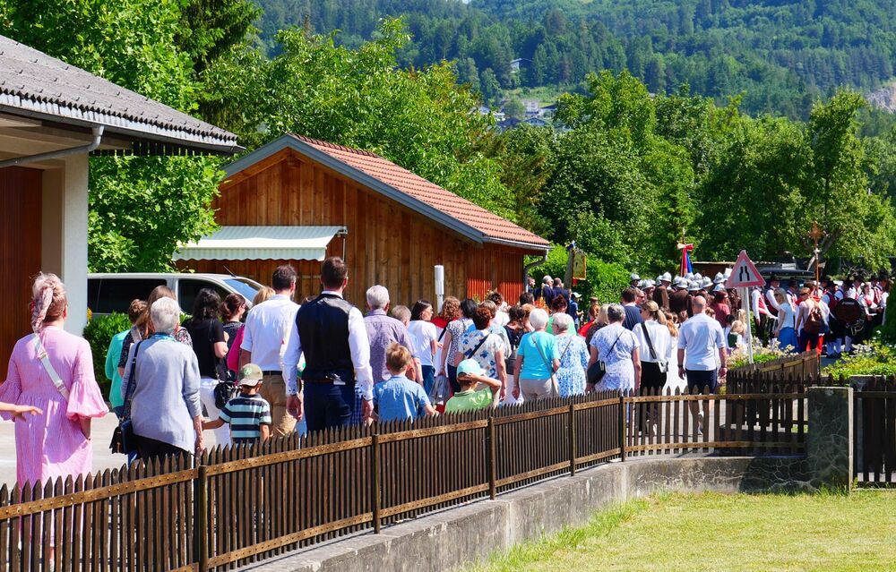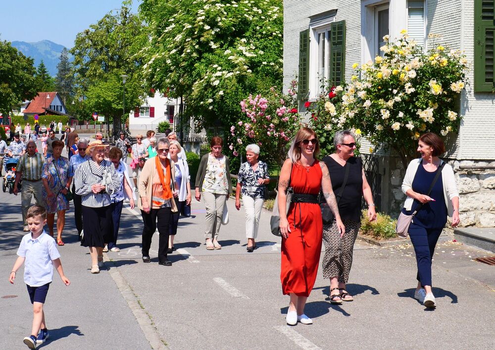 Am Hochfest Fronleichnam führte nach der Messfeier die feierliche Prozession über die Landammannstraße zum ersten Altar beim Restaurant "Trovado" über die Frödischbrücke und Austraße zum zweiten Altar beim Haus der Familie Feuerstein bis in die Kirche von Muntlix, wo wir zum Abschluss gemeinsam "Großer Gott, wir loben dich" sangen.