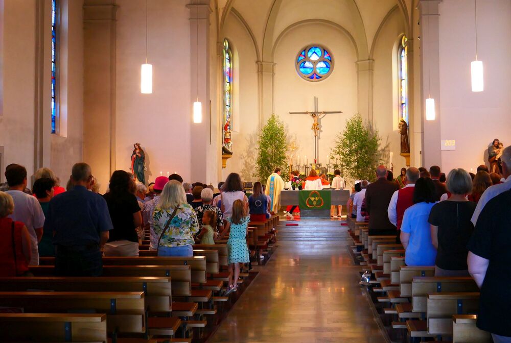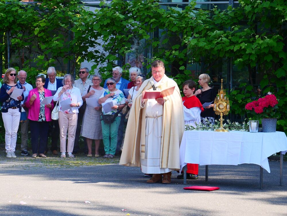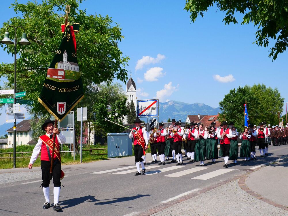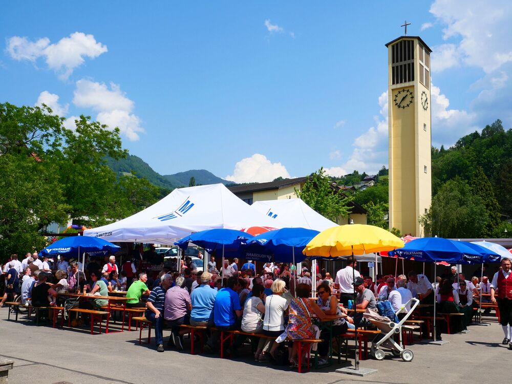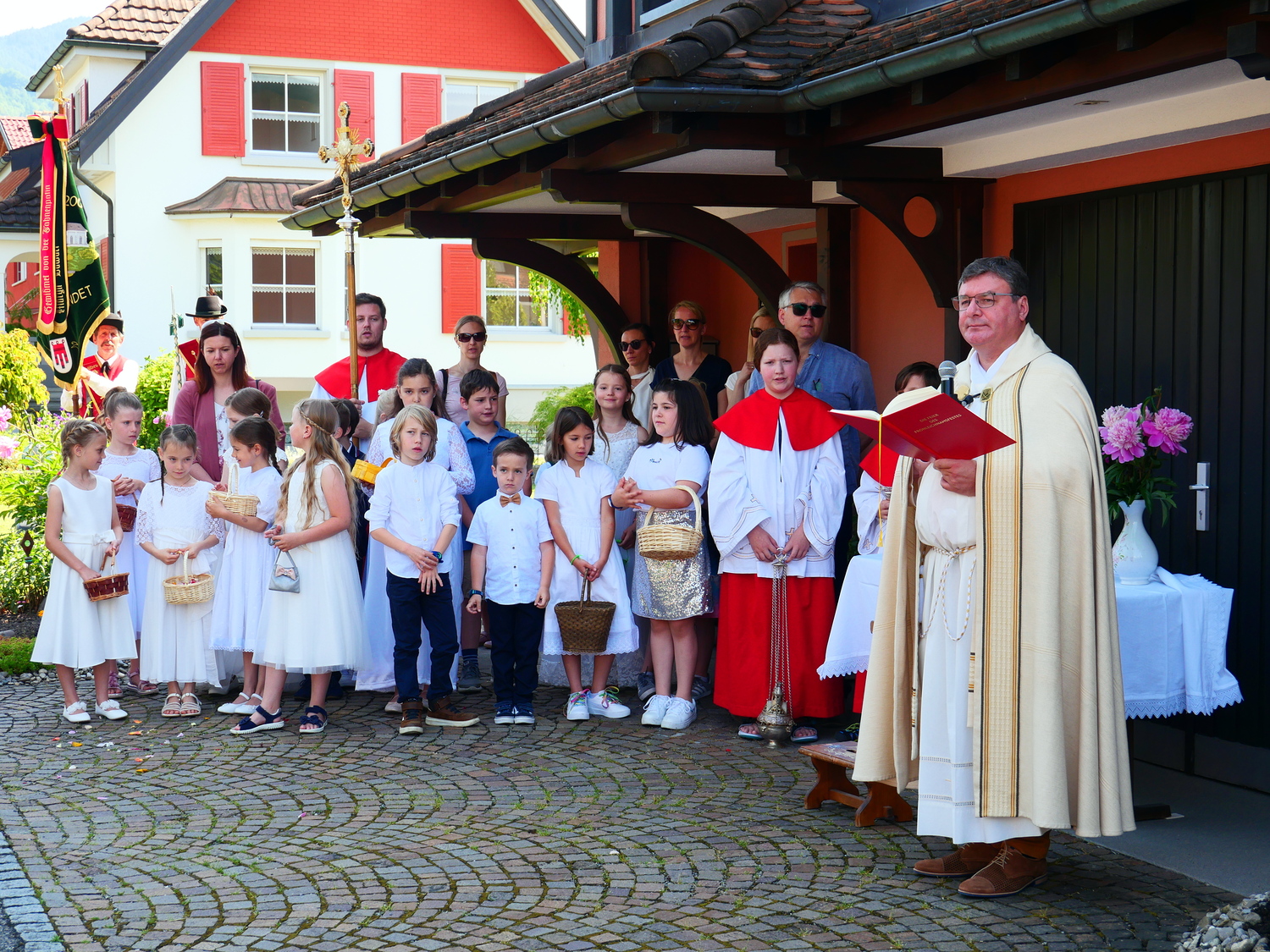 Am Hochfest Fronleichnam führte nach der Messfeier die feierliche Prozession über die Landammannstraße zum ersten Altar beim Restaurant "Trovado" über die Frödischbrücke und Austraße zum zweiten Altar beim Haus der Familie Feuerstein bis in die Kirche von Muntlix, wo wir zum Abschluss gemeinsam "Großer Gott, wir loben dich" sangen.