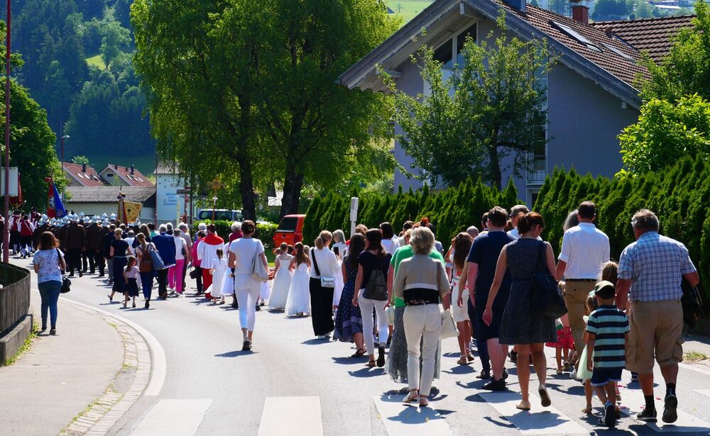 Zahlreiche Pfarrangehörige von Sulz und Muntlix reihten sich in die Prozession, an der sich auch die Kommunionkinder, der SchützenMUSIKverein, die Freiwillige Feuerwehr, der Radfahrverein "Enzian" und der Kirchenchor beteiligten. Bei den Altären sangen, beteten und dankten wir Jesus Christus für seine Gegenwart. Dabei baten wir auch um seinen Segen für unsere Orte und seine Menschen.