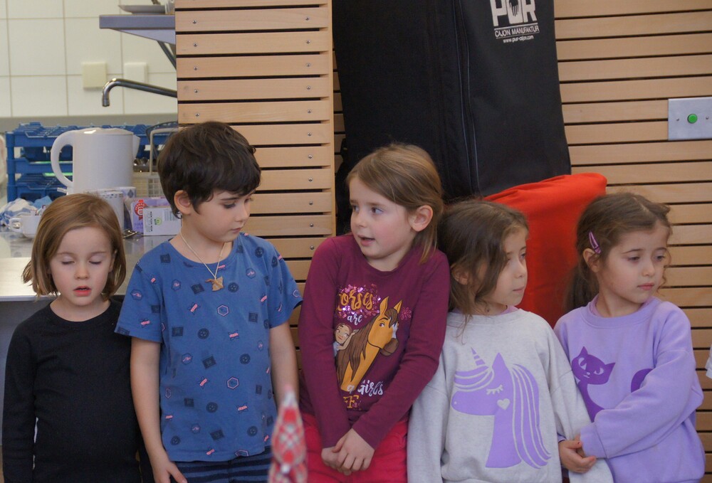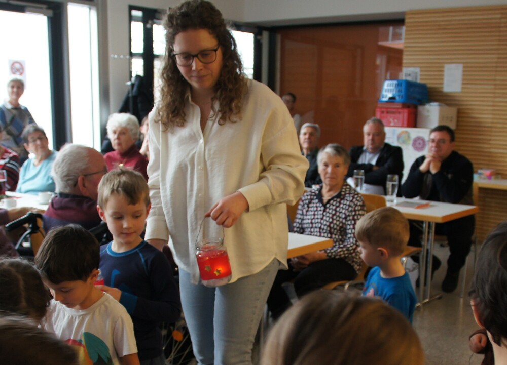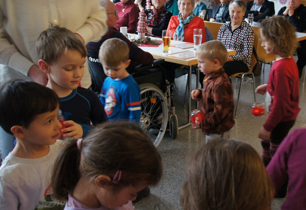 Man rühre eine Kindergartengruppe mit Liedern, einem Gedicht und einem Lichtertanz darunter, damit die sprühende Fröhlichkeit in den Vordergrund tritt.