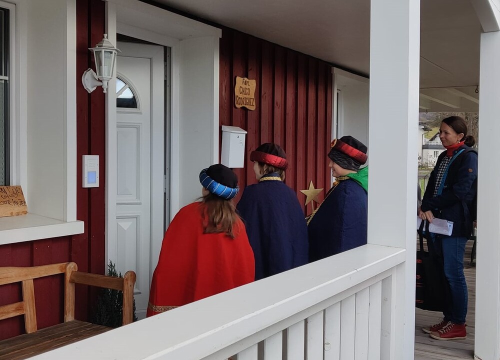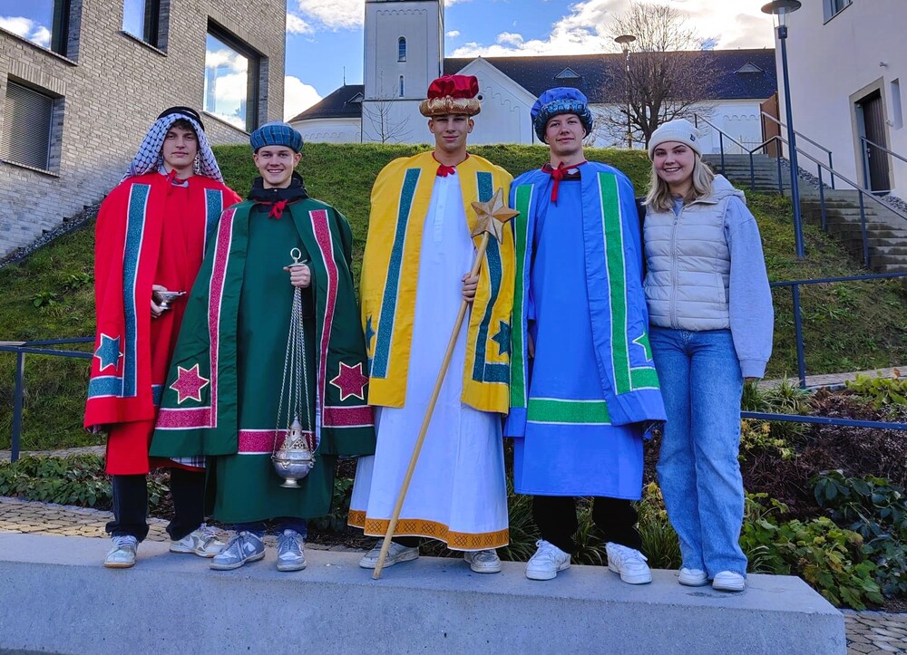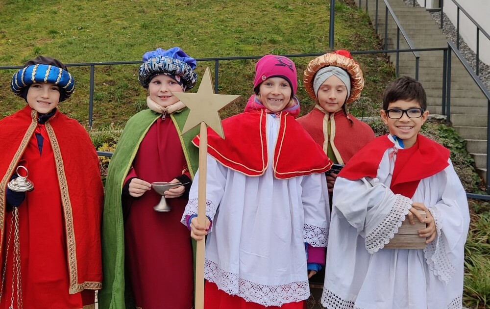 Grüß euch Gott im neuen Jahr, ist wieder hier die Sternsinger-Schar. Frieden tragen wir in die Welt hinaus. Der Herr bringt Segen in jedes Haus!