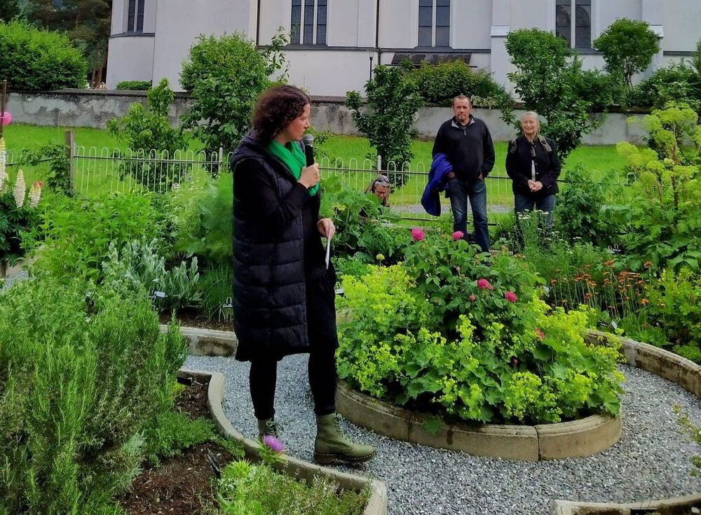 Führungen von Andrea Mathis durch den Hildegard Pfarrgarten, die Kinderecke mit Bastel- und Malmöglichkeiten, ein von Gemeindearchivar Karl Frick geleiteter Pfarr geschichtlicher Rundgang im Außenbereich sowie die Ausstellung der Kirchenschätze im Pfarrheim begeisterten Jung und Alt. Markus Bechter überraschte die Besucher des Pfarrgartens mit harmonischen Klängen einer Handpan!