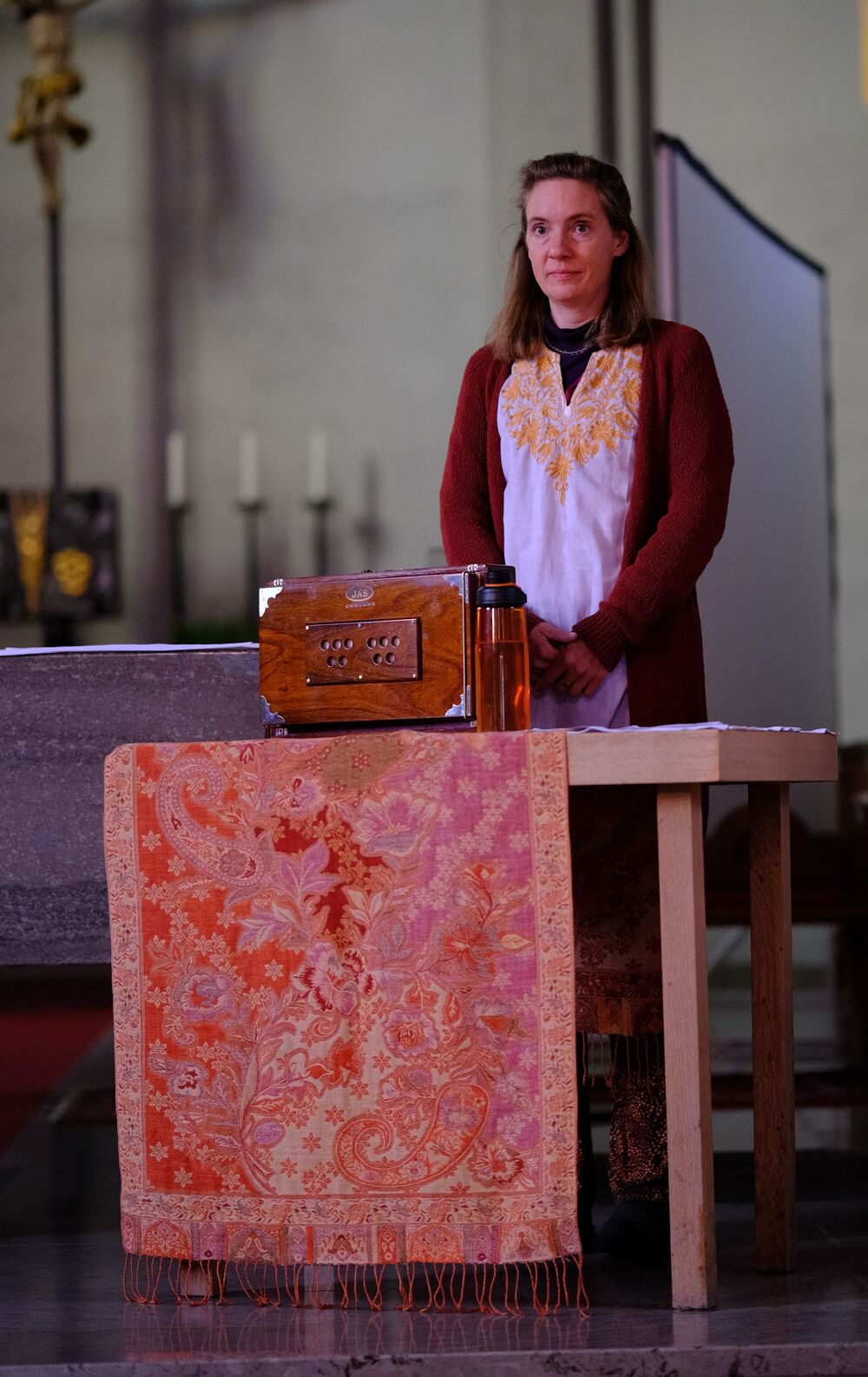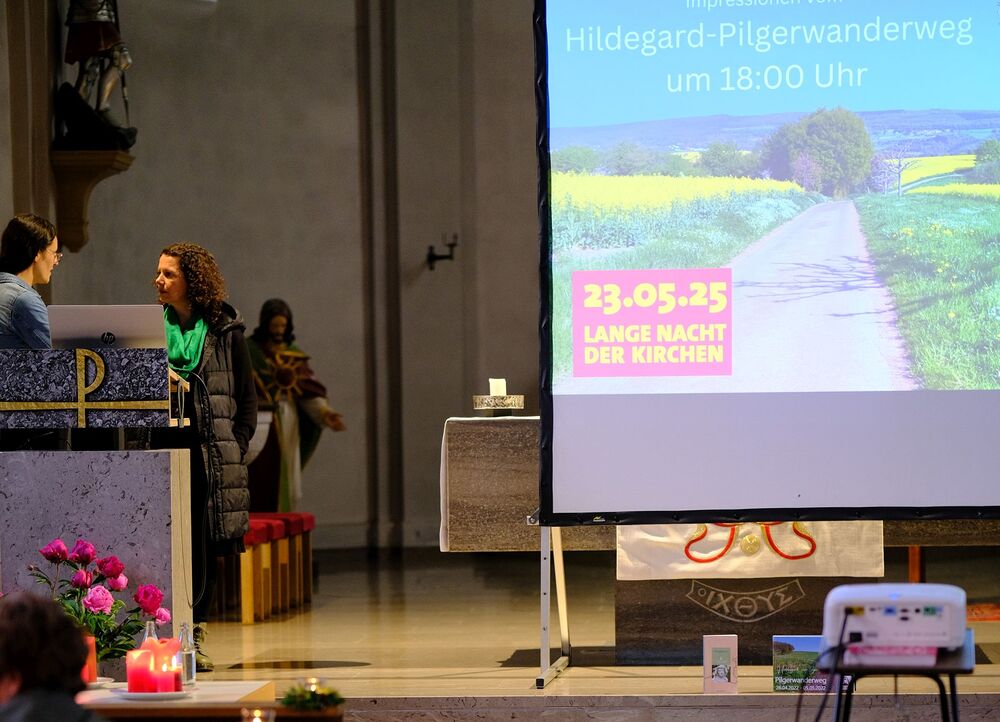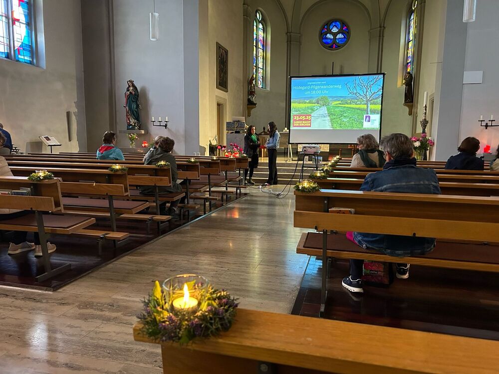 Im Kirchenraum erwartete uns ein Vortrag von Andrea Mathis über den Hildegard von Bingen Pilgerweg, ein Orgel- und Blockflöten Konzert mit Barbara und Georg Monitzer und ein Gesangsvortrag mit Shrutibox von Aglaia Maria Mika.