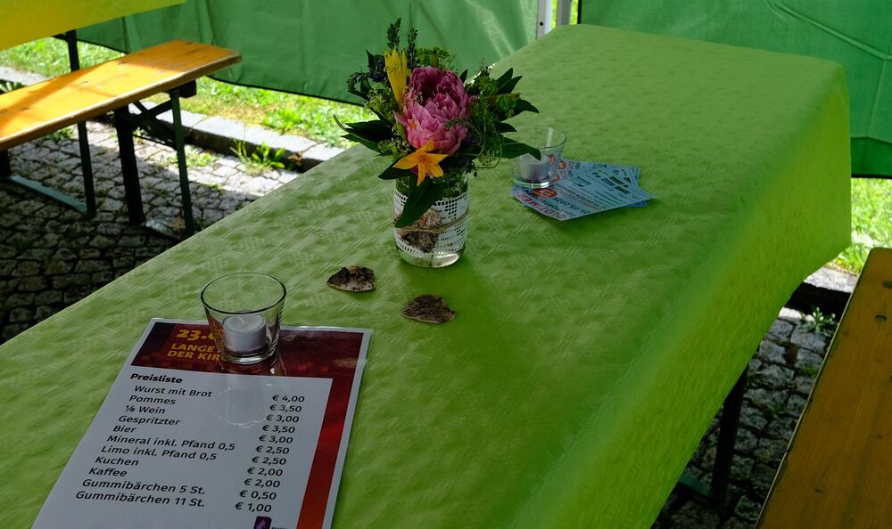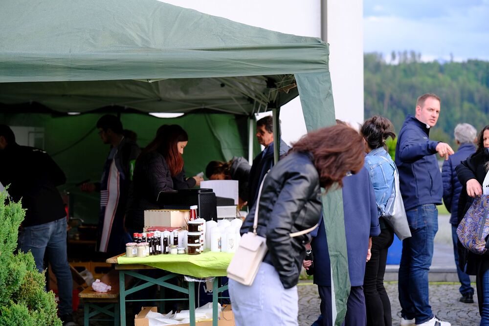 Im Außenbereich schützten Zelte unsere Besucher und die Bewirtungskräfte vor zeitweise einsetzenden kurzen Regenschauern. Das reichhaltige Angebot von Speis und Trank wurde gerne angenommen.