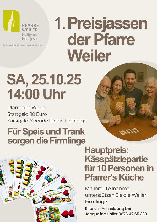 Das erste Preisjassen der Pfarre Weiler nicht verpassen und sich gleich anmelden.