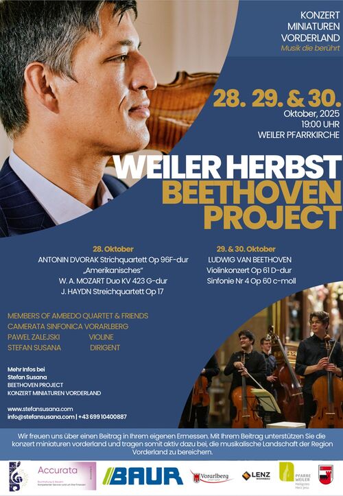 "Musik, die berührt" ist das Credo der Konzertminiaturen Vorderland. Mit klassischen Werken rundum Beethoven und Haydn servieren die Streichorchester ein professionelles Konzertmenü. Internationale Musiker:innen zeigen ihr Können und verwandeln den Kirchenraum in einen musikgewaltigen Klangraum. |