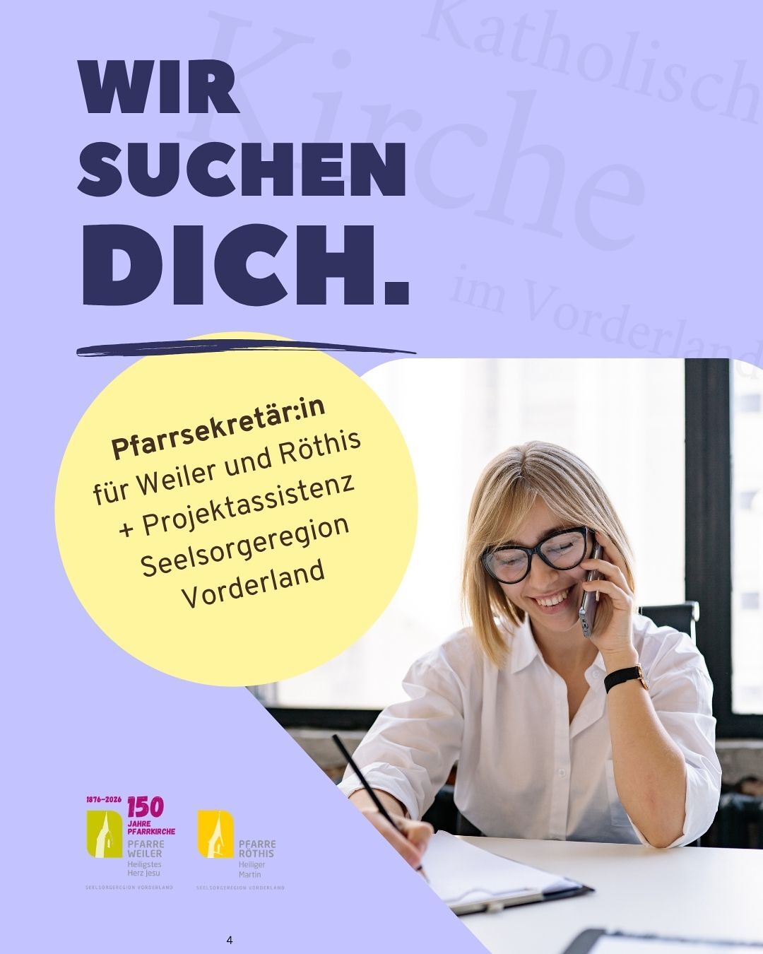 In der Seelsorgeregion Vorderland (Projektassistenz und Assistenz Pastoralleitung) erwarten Sie ebenfalls spannende Aufgaben: